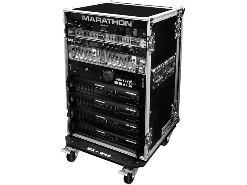 16U Amplifier Deluxe Case - 18" Body Depth with Wheels. Made from high quality materials with outstanding reliability and all-around protection for your equipment. Fits professional amplifier equipments up to 16U, it has two detachable solid covers for covenient entry and gear placement with identical rack rails at an 18" depth, with strong caster board.