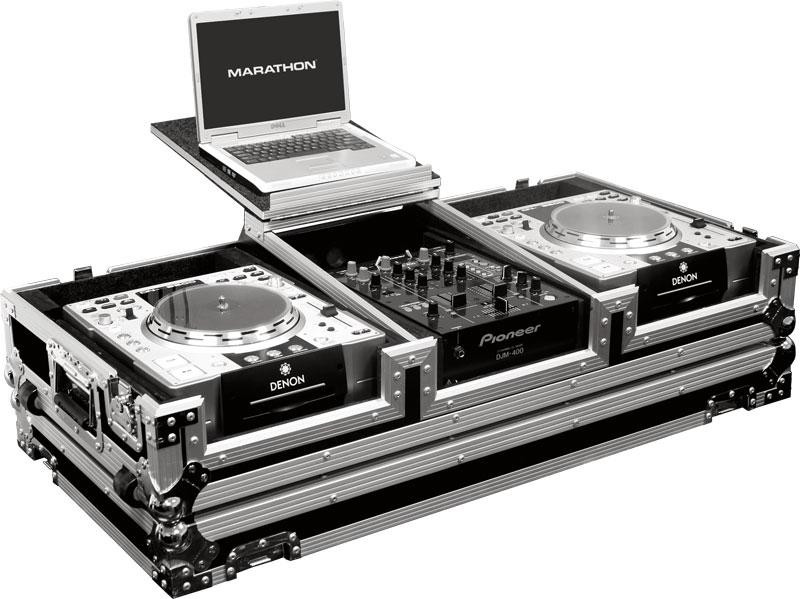 Holds 2 x Large format CD players: Pioneer CDJ1000, CDJ800, Denon DN-S5000, DN-S3500, DN-S3700, Stanton C303, 304, 314 and Technics SLDZ1200 + 10" Mixer with Low Profile Wheels & Laptop Shelf to hold up to a 15" laptop. Holds 10" mixer such as Pioneer DJM-400, Rane TTM-56, TTM-57SL, Numark DXM Models, Denon DN-X120, DN-X100.