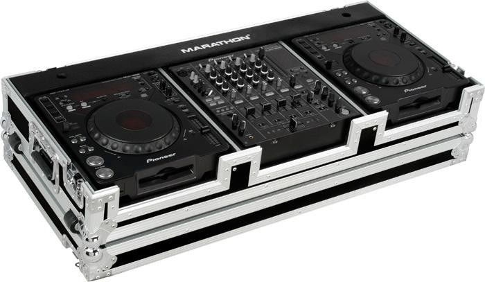 Coffin holds 2 x LARGE FORMAT CD Players: Pioneer CDJ-1000, CDJ-800, DN-S3700, DN-S3500 plus 12" mixer: DJM-800. Behringer DJX-750, DDM-4000, Denon DN-X1500, DN-X1100, DN-X1700 with low profile wheels.