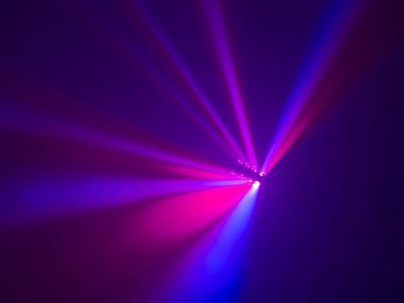 • Narrow, razor-sharp beams of RGBW (red/green/blue/white) light for astonishing aerial effects