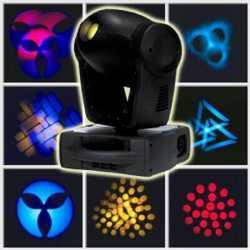 • Gobos: Continuous rotation gobo wheel with 8 interchangeable rotating positions plus open Gobo shake