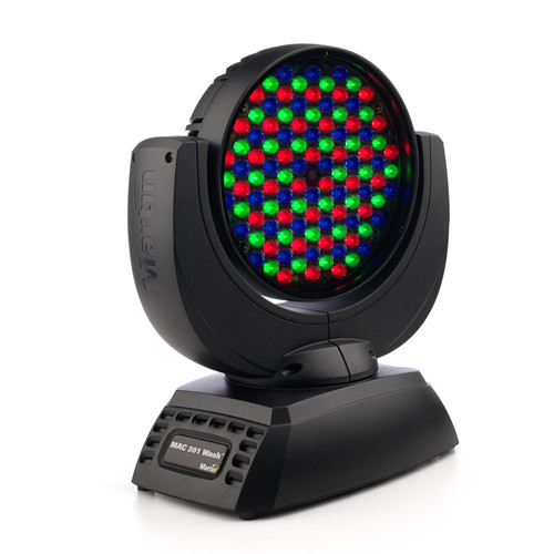 The MAC 301 Wash' is an LED moving head washlight with a powerfully fast zoom and impressive zoom range. It is capable of producing a wide range of exceptional colors from rich saturated shades to pastels through the entire zoom range.