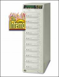 The Inferno is a high performance, standalone CD Recordable duplication system; utilizing new 12X CD recording speed, these units are expandable with Master-Slave configurations, and have easy one touch operation.