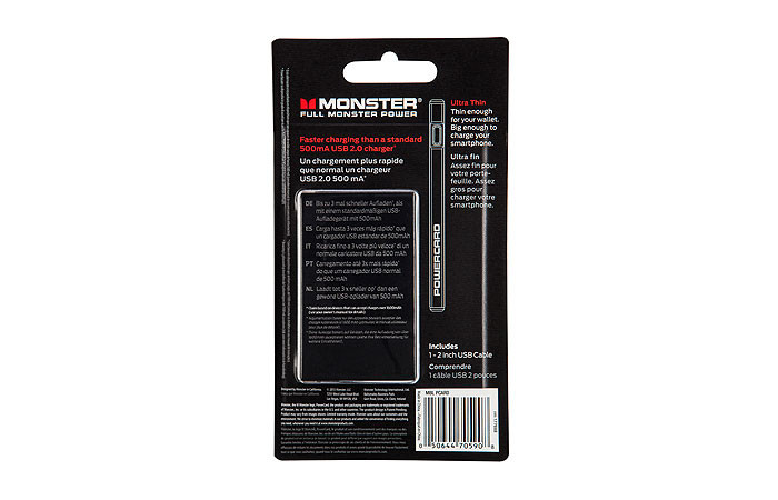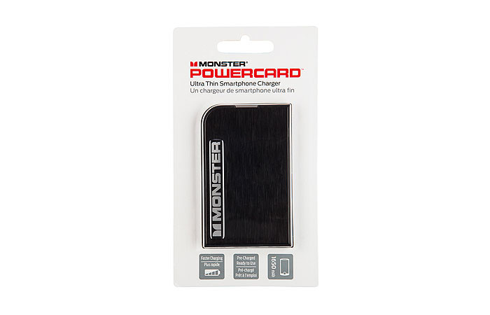 Monster's Power Card' Universal Smartphone Charger packs serious punch. Super thin, it fits into your wallet for power on the go. A great value and easy to transport, it's perfect for quick emergency charges.