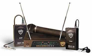 The Encore DUET VHF wireless dual channel system uses Nady's proprietary DigiTRU Diversity digital processing circuitry to eliminate dropouts and maximize operating range. Includes: 1 Encore Duet digiTRU diversity receiver, 1 AC-E1X power supply, 2 WHT handheld mic, 1 9Volt battery, (1) 6' 1/4" to 1/4" connecting cord.