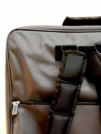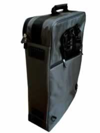 The Juju Effects/DJ Bag was quickly nick-named the Juju "Magic Bag" because of its unique capability to be reconfigured and for the multiple methods of carrying the bag. The Juju is an oversized bag/backpack designed to offer great protection for dj and audio gear that may not have other easy solutions, and was originally aimed at providing a bag for a guitarist's effect pedal board. While it still serves the guitar player, it fits many types of larger gear such as audio mixers and laptop dj controllers.