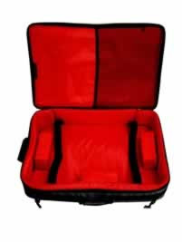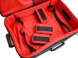 One of the best features of this bag is that the roomy interior is reconfigurable using three 3"x 4"x 6" cushion blocks that are included with the Juju to change the internal dimensions to give your gear the "perfect fit". The normal interior dimensions are 26" x 17" x 4.5", but depending on whether the blocks are positioned using the 3" side or 4" side and whether one or multiple blocks are used, the change is dramatic. The bag ships using the blocks to change the dimensions to 20"x 14"x 4.5" and by simply flipping the blocks over to the other side it would further reduce the space to 18" x 13" x 4.5". The interior also has Velcro tie-down straps to keep your gear from shifting during transport.