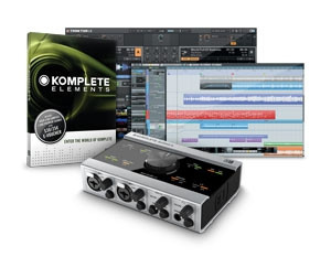 The KOMPLETE AUDIO 6 package also includes KOMPLETE ELEMENTS, with over 1000 sounds and effects, plus software for recording, sequencing and DJing.