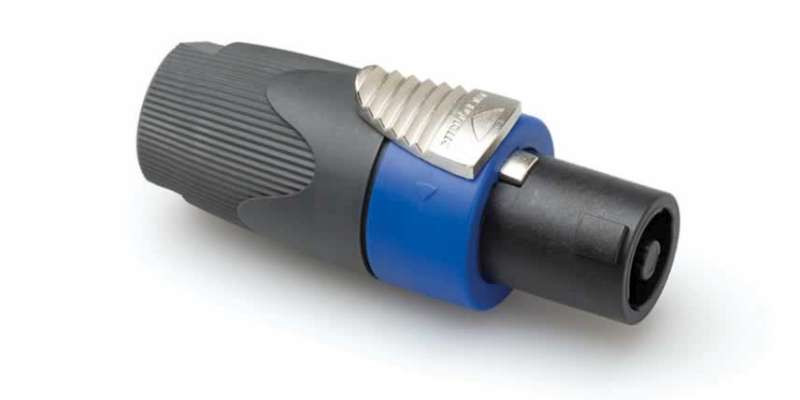 4 pole cable connector, chuck type strain relief, dark grey bushing. The industry-standard for loudspeaker connections offer extremely reliable and robust cable connectors with a reliable locking system. They feature solid contacts with screw-type terminals including a stranded wire protection which offer also solder termination.
