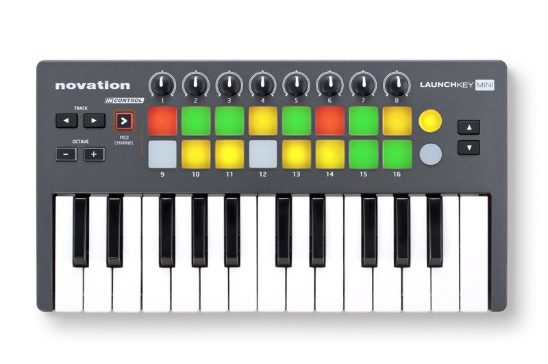 Launchkey Mini is an instrument for iPad, Mac and PC. It has a minikeyboard, eight knobs and 16 three colour velocity sensitive launch pads' so you can control your software as well as triggering loops and samples. Launchkey Mini can be used as a keyboard / DAW controller so you can get hands-on control of major music software such as Pro Tools, Cubase, Reason, Logic, FL Studio and Ableton Live. The eight knobs (pots) can control your software's mixer using Novation's InControl' technology. The 16 launch pads are velocity sensitive so can trigger drums and samples as well as launching clips and scenes in Ableton Live.