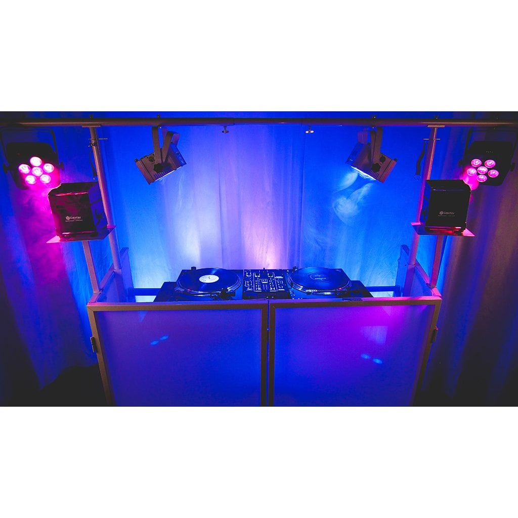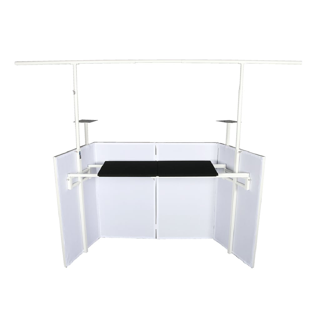 The Novopro SDX V2 foldable DJ booth has been designed and engineered by working performers to be the most practical and versatile entertainment booth in the market. Manufactured in a tough and durable, powder coated steel finish with solid welded construction points, the SDX V2 booth is built to last. All metal and plastic components are finished in white on this model and with practical black carpeted shelves giving you a great finish and appearance at your events.