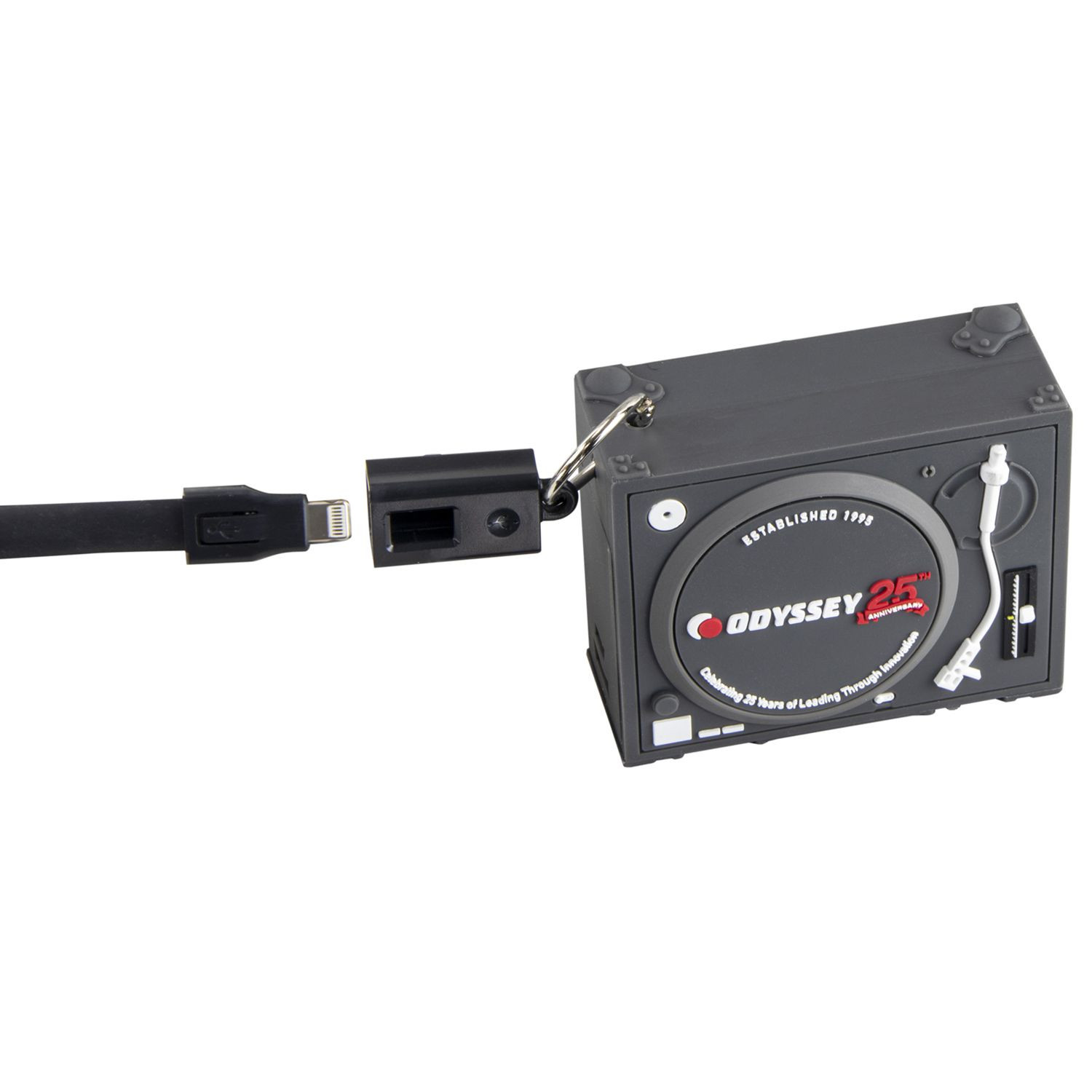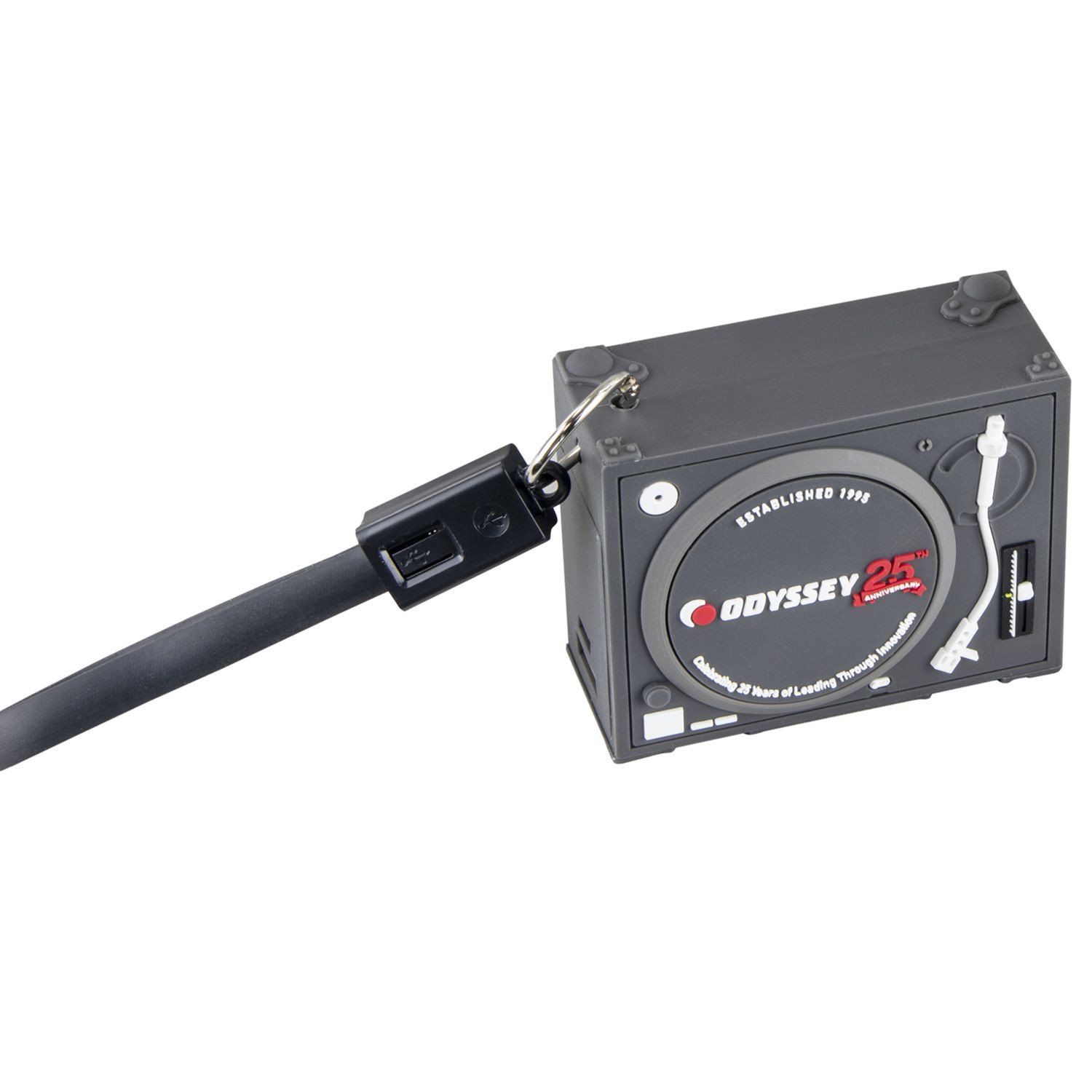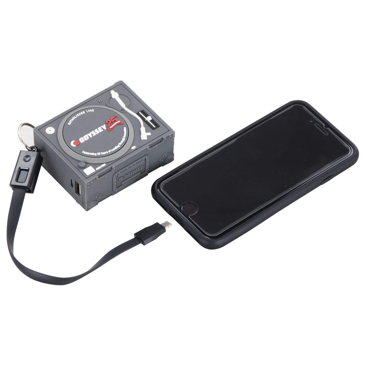 Odyssey's Turntable Case Power Bank is a super-limited portable charger designed to efficiently re-charge your smartphone while on the road; iPhone and Android capatible. The unique turntable case concept is a must have for DJs, includes USB-A and micro USB cables.