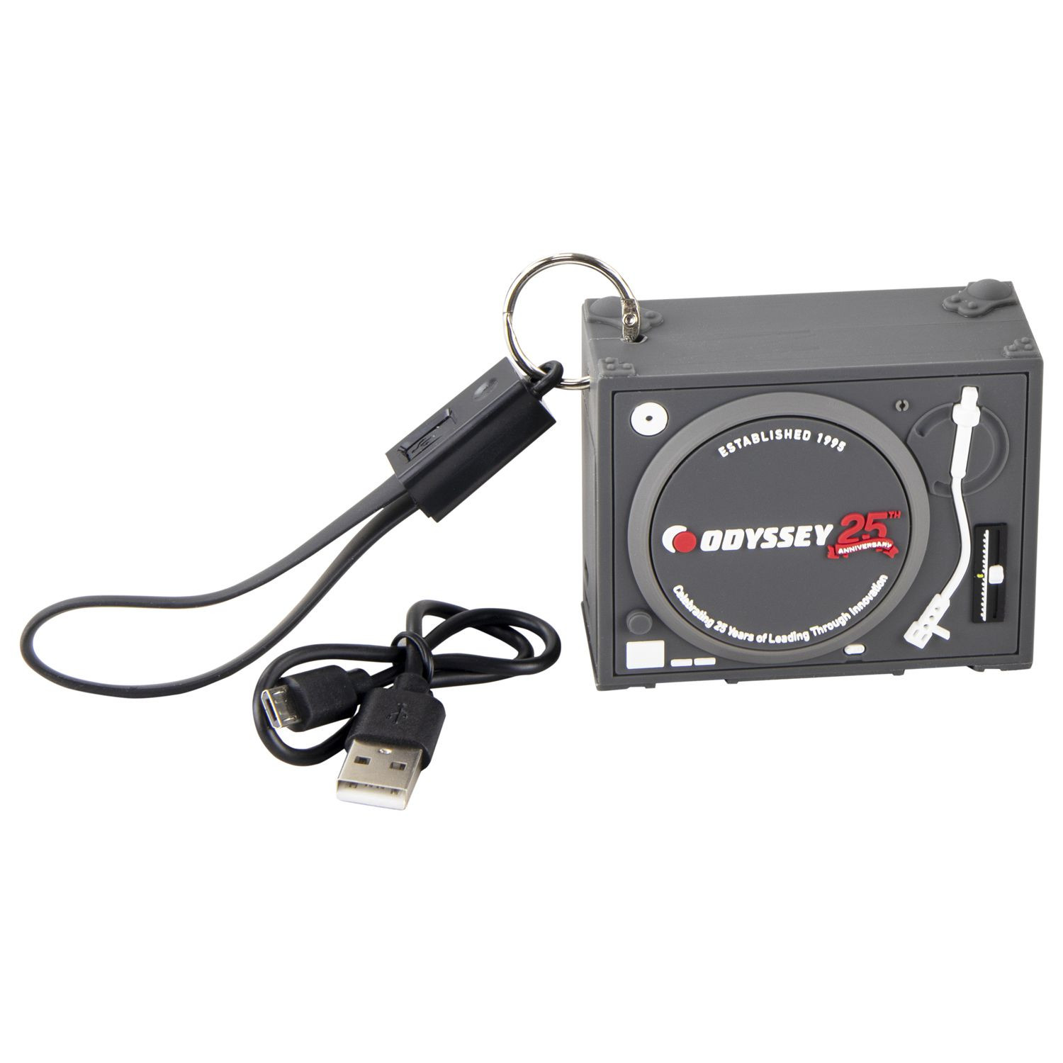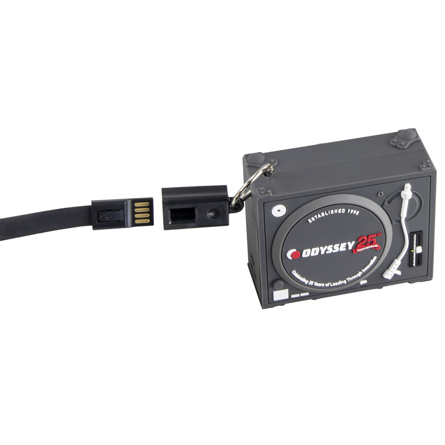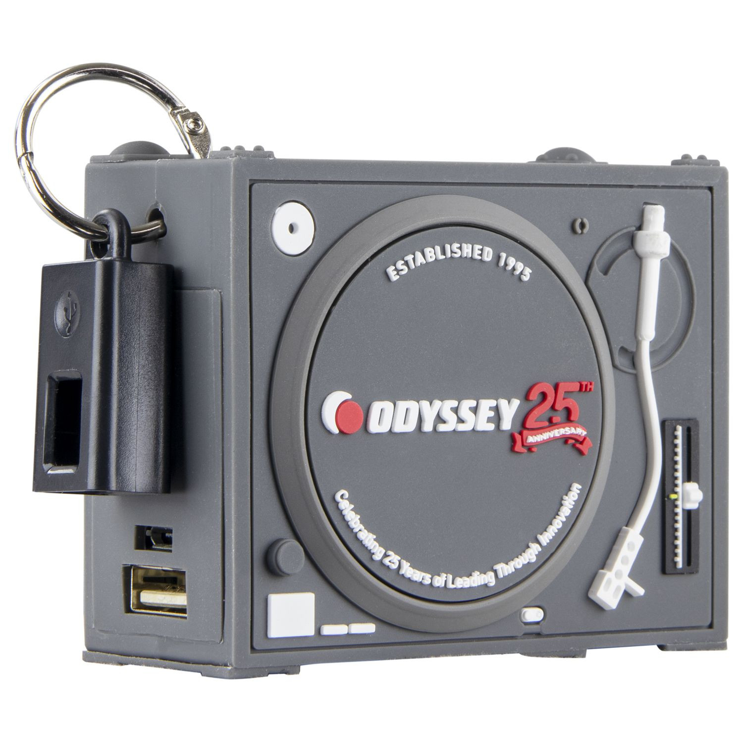 Odyssey's Turntable Case Power Bank is a super-limited portable charger designed to efficiently re-charge your smartphone while on the road; iPhone and Android capatible. The unique turntable case concept is a must have for DJs, includes USB-A and micro USB cables.