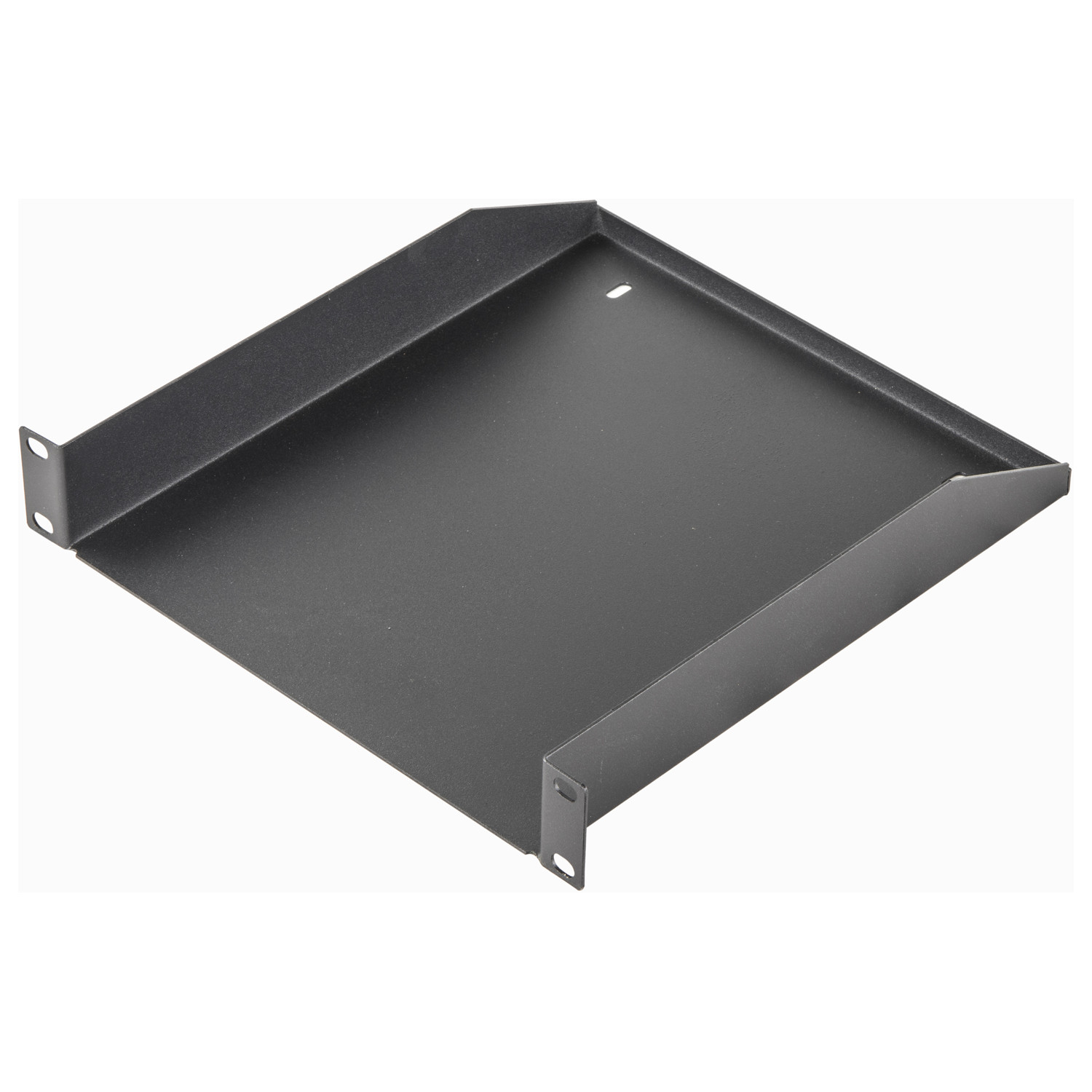 The Odyssey ARHS1 steel shelf holds up to approximately 25 lbs. of gear evenly distributed when properly mounted onto a standard half rack.