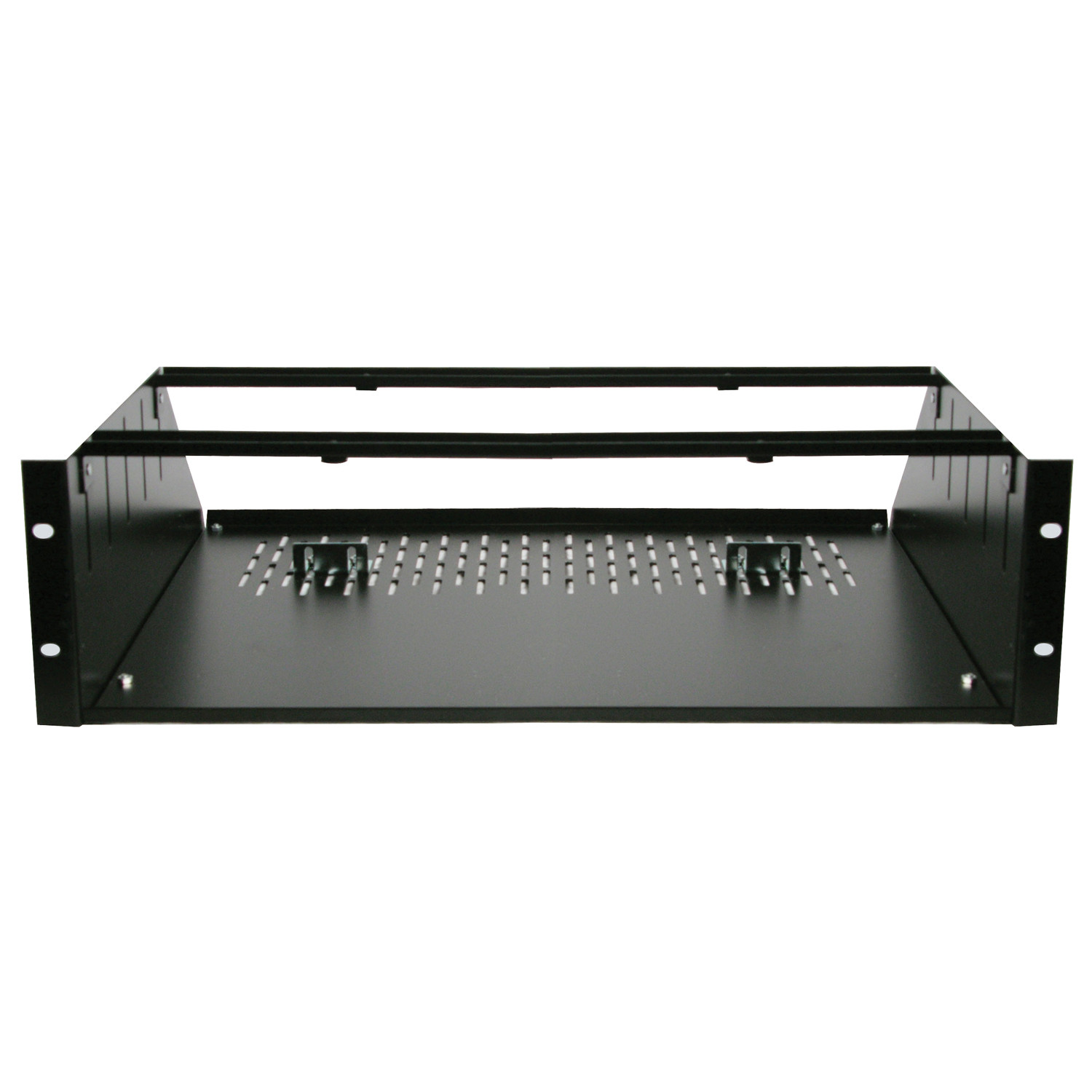 This versatile shelf is constructed of 16-gauge cold, rolled steel and finished in durable black baked enamel. Comes complete with 2 fully adjustable hold down bars that "trap" equipment. Bars are padded to protect the finish on your gear.