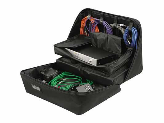 Get organized with our Mic Wizard. Not only does it safely hold all your mics in it's diced foam compartment, it holds all your accessories as well! Eight cable loops on each flap (16 total) keep all your cables and power supplies separated and reduce that awful time wasted untangling intertwined wires! The bonus triple velcro flap insert can hold wireless receivers, preamps, DI boxes or any other outboard gear up to 19" wide and 1U tall and sits comfortably atop the foamed mic area. Great for bands and mobile sound professionals.