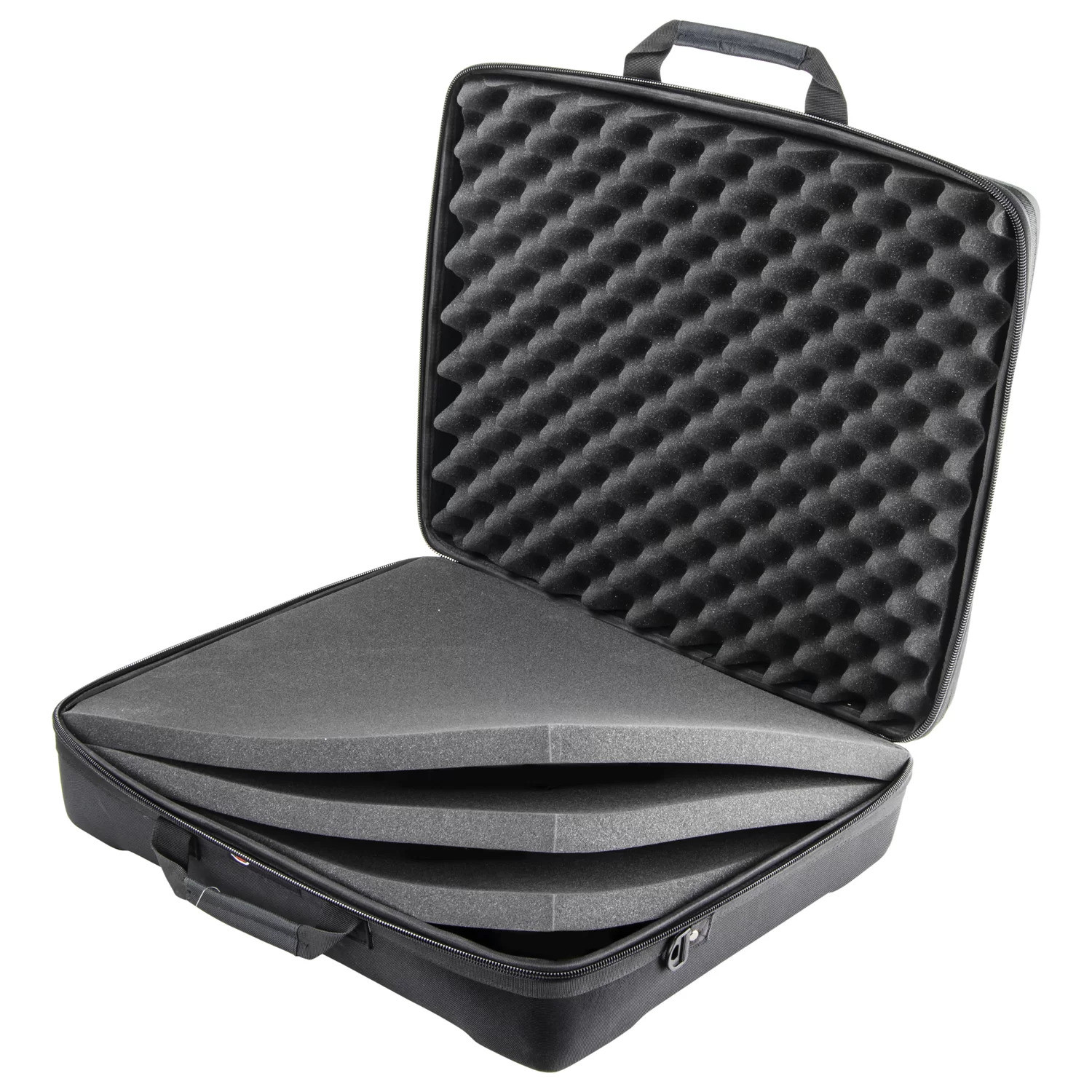 Optimize protective space by safely laying them between the convoluted foam sheets. Customize your case with optional foam sheets that can be purchased separately. These durable yet lightweight cases have large top grade custom logo zippers, comfortable rivet enforced double handles, and non-slip shoulder straps to ensure secure mobility. Keep your mind at ease as you flow on down to your gigs with a signature series Streemline' DJ case!