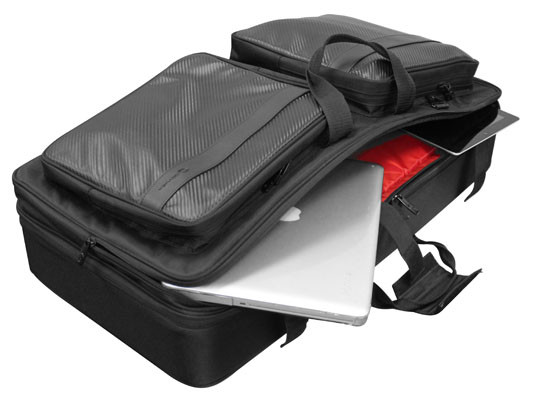 • Front Accessory Compartments with Multiple Interior Pockets Including a LSTANDM Laptop Stand, Headphone Pouch, and Convenient Elastic Band Cable Holders