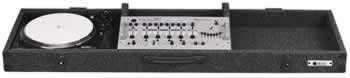 Carpeted economy DJ Console holds (1) 19" mixer and (2) turntables in standard position. Surface mount hardware. Other features include surface-mount hardware, fully foam padded turntable wells, and a removable hinged lid.