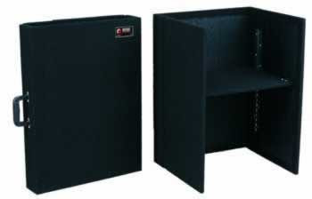 Provides a sturdy foundation for your gear and hides your mess. Holds your gear at a comfortable height and provides a shelf to keep stuff on. It folds away when not in use for easy storage and features a handle for easy transport. 21"W x 28"H x 17.5"D. 28 lbs.