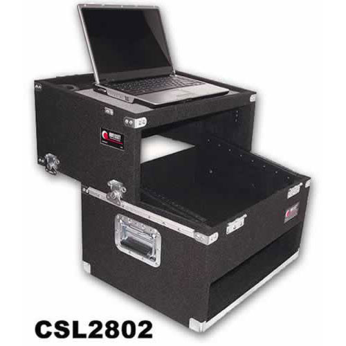 Incorporating our patented slide style design with 8 spaces on the mixer slant, 2 spaces on the slide back, and 2 vertical spaces below. Sitting above the slide section is a platform so your laptop or monitor sits unobstructed from the rest of your gear.