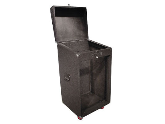 The CXC Combo Series features a flush-mount slanted top section unique to Odyssey cases. The removable front and back entry panels are interchangeable. Heavy duty handles and surface mount latches. Includes wheels for easy transport. 10 spaces on top, 16 vertical spaces below. Friction-fit front cover included (not shown).
