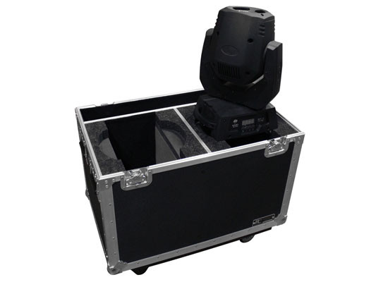 Holds two American DJ Vizi Spot LED Pros. Case features individual compartment for each light and a removable lid with stacking caster plates. A separate storage compartment used for storing clamps, cables, and other related items.