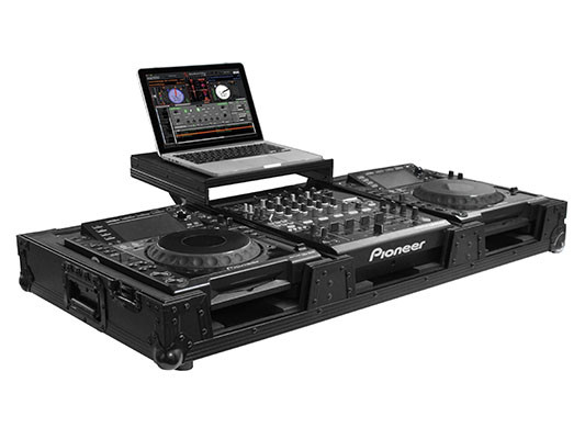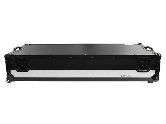The Flight FX' series FFXGSL12CDJWBL low profile Glide Style' Coffin holds one 12" format mixer and two large format tabletop CD/media players. Features include rugged built-in corner wheels, sturdy 90 degree handles on the lid, recessed latches and spring-loaded handles, heavy-duty ball corners, and front mixer and player V-cut' access panels. Cabling is clean and easy with convenient access ports throughout the rear of the case.