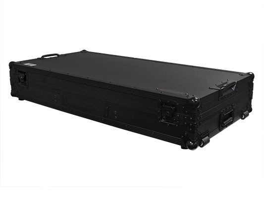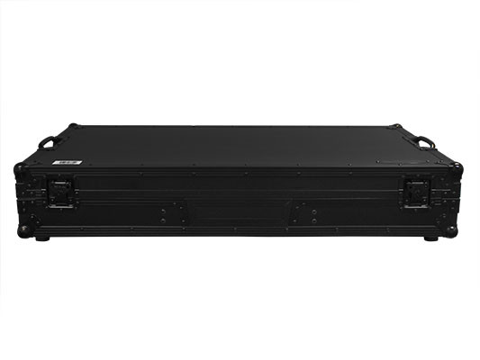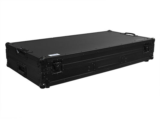 The Flight FX' series FFXGSLBM12WBL low profile Glide Style' Coffin holds one 12" format DJ mixer and two turntables in battle position. Features include rugged built-in roller wheels, sturdy 90 degree handles on the lid, recessed latches and spring-loaded handles, heavy-duty ball corners, and a front mixer section V-cut access panel. Cabling is clean and easy with convenient access ports throughout the rear of the case. Our turntable DJ coffins can accommodate Technics as well as Numark, Pioneer, Stanton, and similar sized turntables.