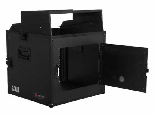 Now available in the Black Label Series, the Flight Zone Combos feature our patented sliding laptop platform mounted above a 19" ATA case. At your gig, set your laptop on the carpeted surface, plug in and you're ready to go. Slide it forward to use your laptop. Slide it back to use the mixer section underneath. Keep your laptop close and safe on a sturdy new Glide Style Combo case.