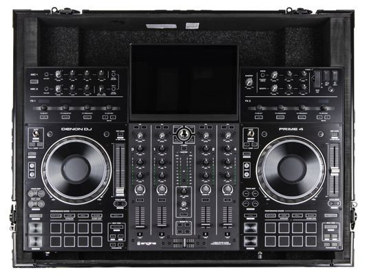 The Flight Ready FRPRIME4BL case is designed to hold the Denon Prime 4 professional 4-Channel DJ Controller. A V-cut' removable front panel allows easy access to the front controls and headphone/mic jack input. Other features include rubber feet, hefty ball corners, and heavy-duty recessed latches and handle. Also available in our standard Flight Ready Series with silver and chrome hardware FRPRIME4.