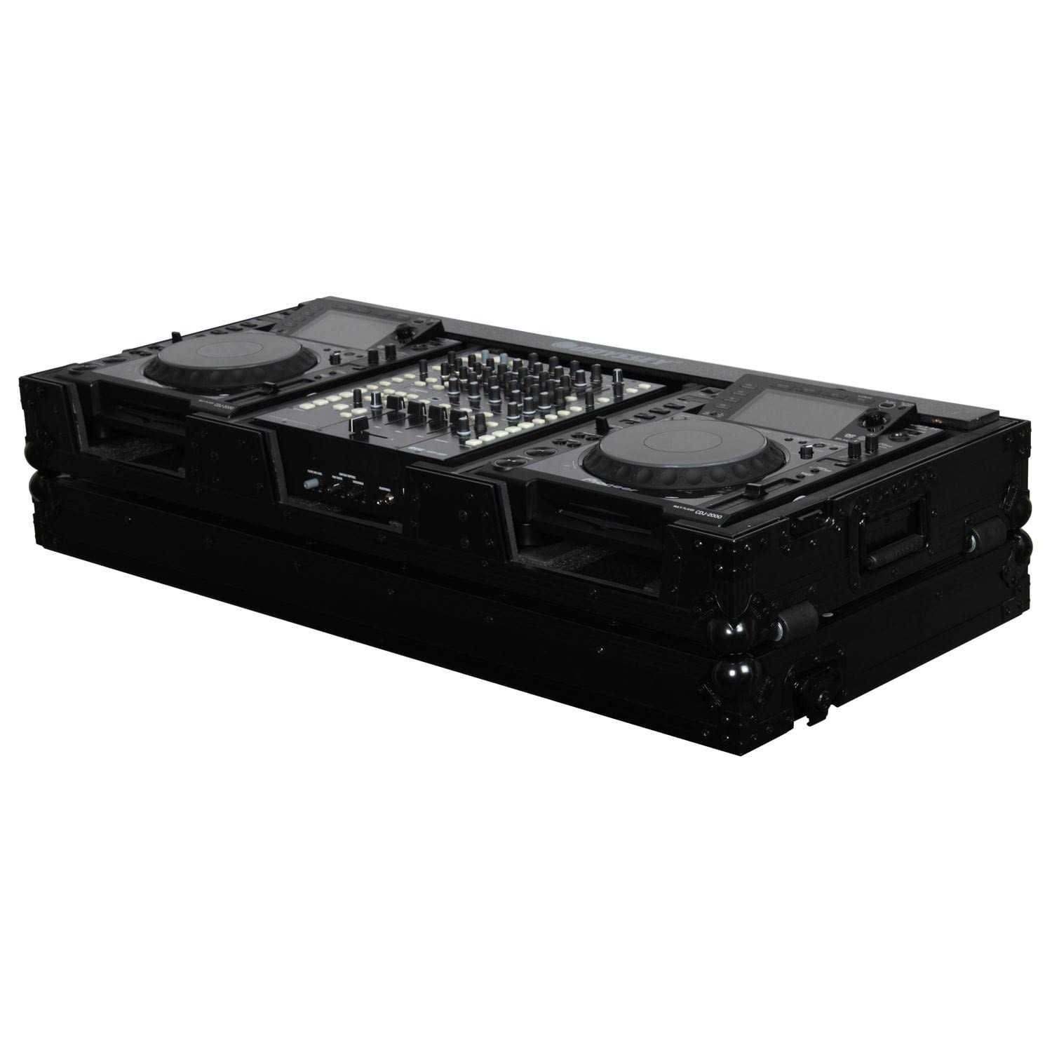 Odyssey's Black Label Series of ATA flight cases. Made to the exact same standards as our Flight Zone series but with a twist. Each compartment feature a valley or pit as you might call it that allows for more ventilation of the gear as well as an area for cables management.The components used to produce this series, including the aluminum trim and hardware, is now anodized and/or powder coated in "Black" for a one of a kind look that is so slick looking it's beyond cool.