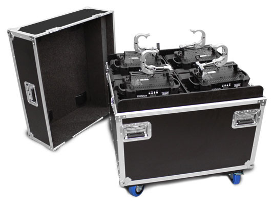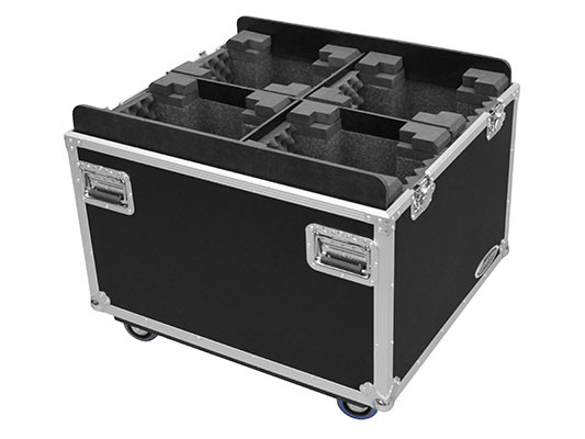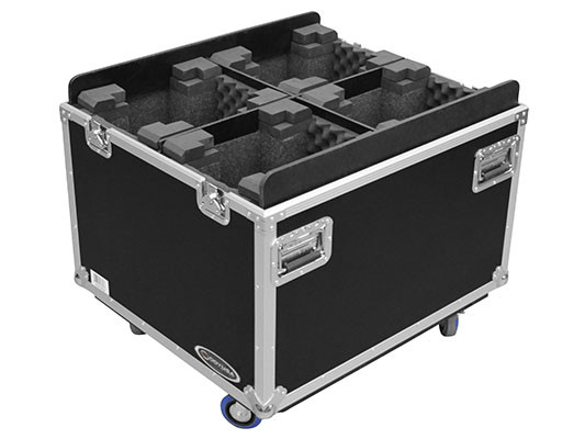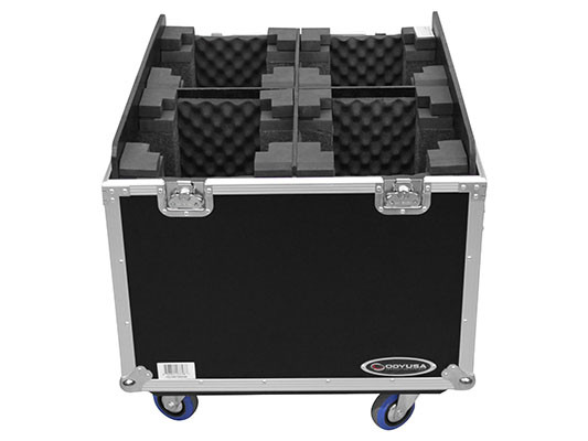 The FZCHINT350X4W road case holds four Chauvet Intimidator Beam/Spot LED 300/350s, Spot LED 355Z/400 IRC's, and other similar size moving head lights. Features include an adjustable interior bevel foam designed with individual compartments for each light, heavy-duty casters wheels and recessed hardware, stacking caster lid plates, and easy guide lid cover panels to name a few. There's no need to be "intimidated" by long rough road trips when your gear is protected with Odyssey cases.