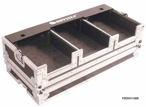 This ATA Console holds one Denon DNX100 mixer and two DNS1000 CD players. It features recessed hardware, heavy duty ball corners and a flip-down front panel for access to mixer controls and CD slots The padded and cushioned interior features a panel that covers the cable area, keeping them out of sight. Detachable lid included (not shown).