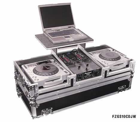 Odyssey Glide Style Coffins hold two large format tabletop CD players or turntables in battle position, one mixer and a laptop. The 10" mixer version features a compartment specially designed to house a Serato interface built right into the gliding laptop platform.