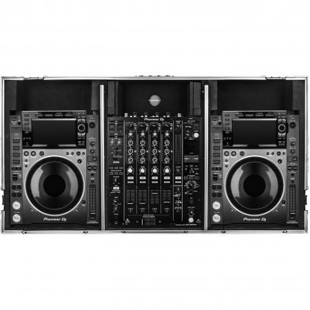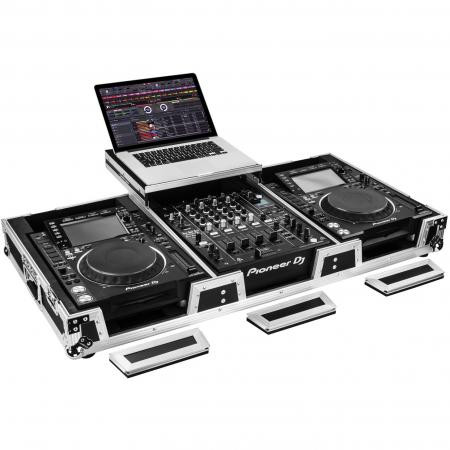Odyssey Glide Style' CD/digital media coffins hold two large format tabletop CD/media players and one mixer. Each compartment features a bottom valley or pit that allows for more ventilation of the gear as well as an area for cable management or storage. Other features include rugged built-in wheels, spring-loaded latches, heavy-duty ball corners, and removable front access panels. Cabling is clean and easy through convenient access ports throughout.