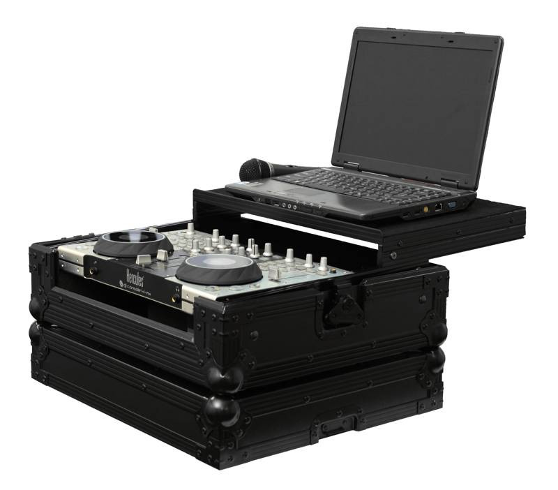 The Flight Zone FZGS4MXBL Hercules 4MX Black Label' series case features our patented Glide Style' laptop platform that can be positioned over the controller to where it best suits you and is designed with enough room underneath to store cables and other DJ essentials. Other features include a front removable panel for easy access to the front input jacks, rubber feat, ball corners, and heavy-duty recessed handle and latches.