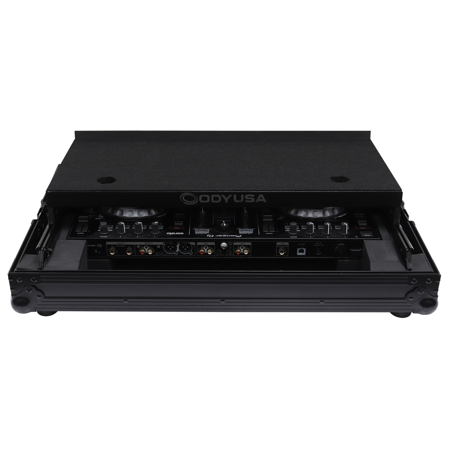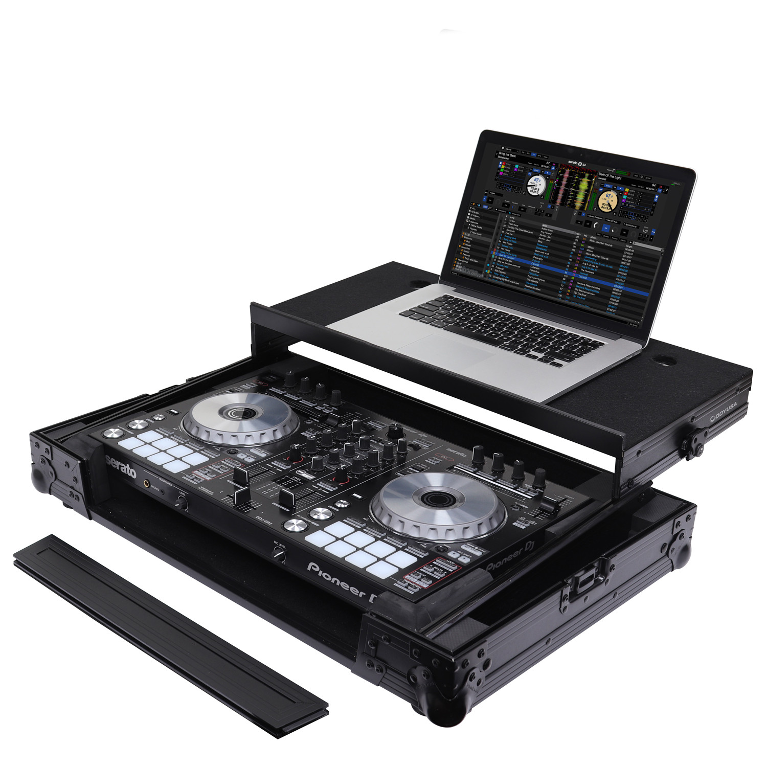 Now you can choose to configure the gliding platform in the standard setup with a flat top surface, or add the additional side support panels that are included with the case to position the platform higher and at an angle. Either way, it's perfect for placing your laptop, tablet, effect processor, modular synthesizer, and other gear right where you want over the controller. Enhance your overall performance by using the angled configuration for superior visualization and reach of your remix production gear's knobs, trigger pads, faders, screens, switches, buttons, keys, etc.