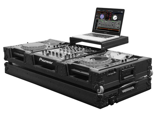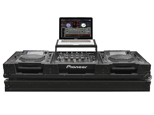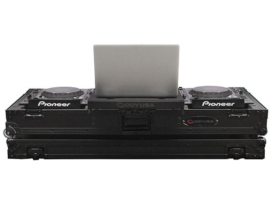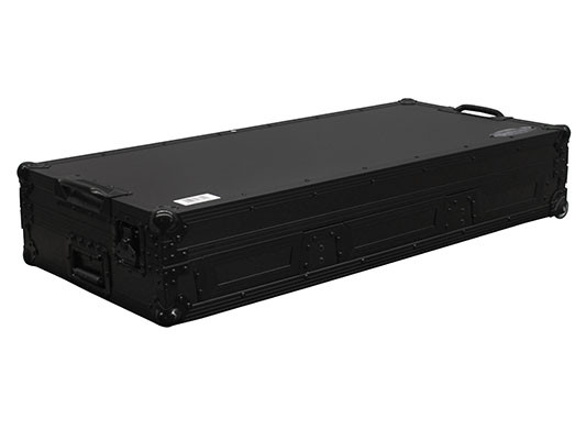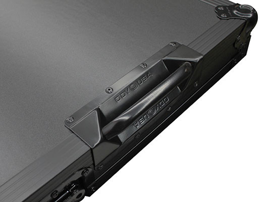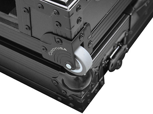 The Black Label' FZGSL12CDJWBL low profile Glide Style' Coffin holds one 12" format mixer and two large format tabletop CD/media players. Features include rugged built-in corner wheels, sturdy 90 degree handles on the lid, recessed latches and spring-loaded handles, heavy-duty ball corners, and front mixer and player V-cut' access panels. Cabling is clean and easy with convenient access ports throughout the rear of the case.