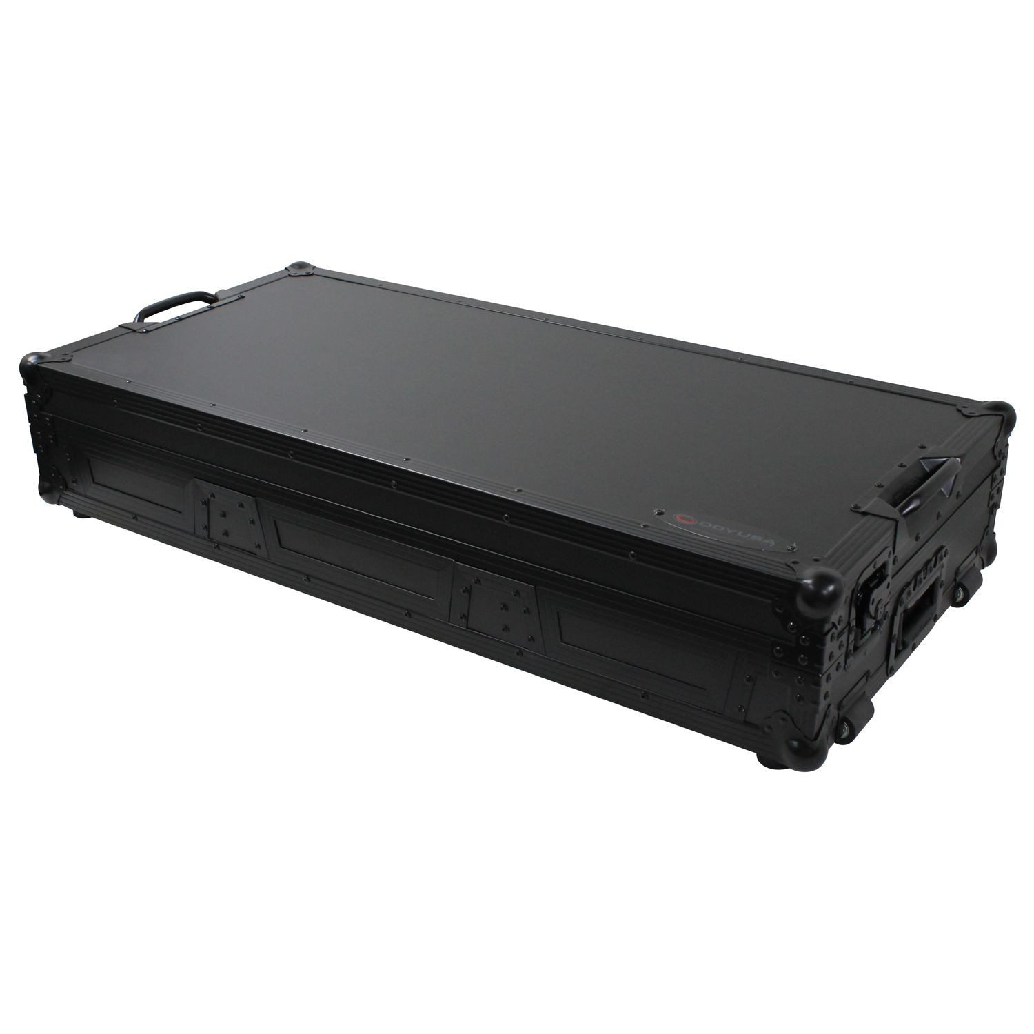 The Black Label' FZGSL12CDJWRBL Low Profile Glide Style' Coffin holds one 12" format mixer and two large format tabletop CD/media players. Features include rugged built-in roller wheels, sturdy 90 degree handles on the lid, recessed latches and spring-loaded handles, heavy-duty ball corners, and front mixer and player V-cut access panels. Cabling is clean and easy with convenient access ports throughout the rear of the case.
