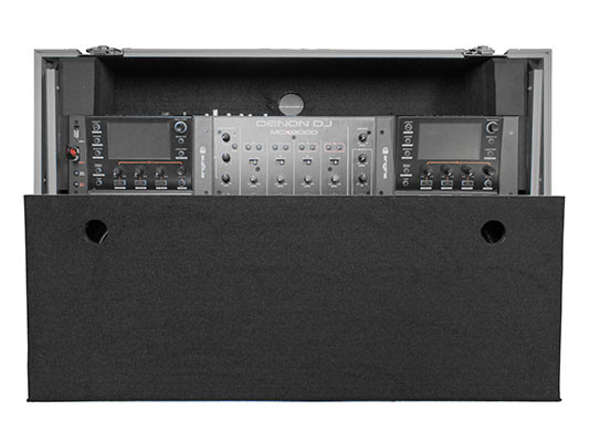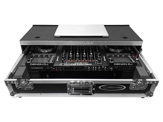The Odyssey FZGSMCX8000W2 Flight Zone case includes a removable V-cut' front panel allowing access to the all of the DJ controller's front knob controls and input jack ports. It features our patented Glide Style' platform perfect for positioning your laptop, tablet, effect processors, and other gear right where you want it over the MCX8000 controller. A cable management port, essential for a clean setup, is positioned below the rear of the player. Also Underneath the controller compartment is another one of Odyssey's signature digital controller case designs; a 2U 19" rack mount space below the controller space perfect for rack mount gear such as wireless mic systems, power strip, drive rack, or storage drawer. The mounting hardware included allows for front or rear rack mounting and can be removed all together if needed.
