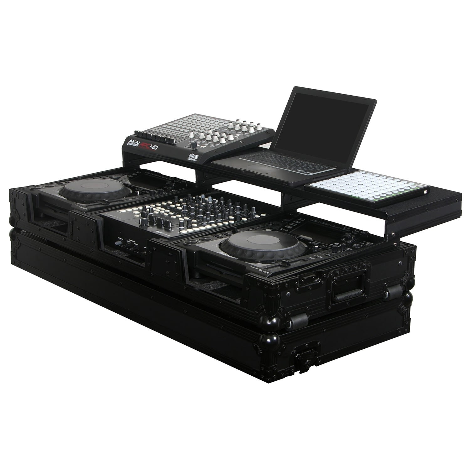 As the evolution of the DJ continues, so does the designs of Odyssey DJ coffins. Introducing the REMIXER' GLIDE STYLE' SERIES FZGSP12CDJWBL DJ coffins featuring a full width glide platform to place all your DJ remix gear. With digital DJ software such as Serato, Traktor Scratch, and Ableton, more DJs have gone through the transition from beat mixing and scratching to full on remixing snd producing. Availability of so many affordable remixing tools to the DJ, such as keyboards and controllers to laptops and iPADs, have grown to an ultimate high and Odyssey is there in the middle of it all providing these DJs the most functional DJ coffins yet with the REMIXER' GLIDE STYLE' SERIES.