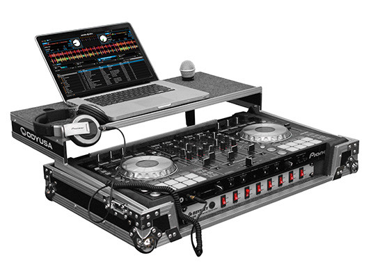 The Odyssey Flight Zone series FZGSPIDDJSX2 case features our patented Glide Style' laptop platform, and now with a 1U 19" rack mount space below the controller space perfect for rack mount gear such as wireless mic systems, power strip, drive rack, or storage drawer. Specifically made for the Pioneer DDJ-RX, DDJ-SX3, DDJ-SX2 and DDJ-SX controllers. It also features our exclusive, patent pending, high-density bevel foam interior that neatly angles upward raising the controller for an efficient control surface. The stylish V-Cut' removable panel allows for easy access to the front controls and headphone/mic jacks.