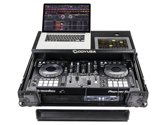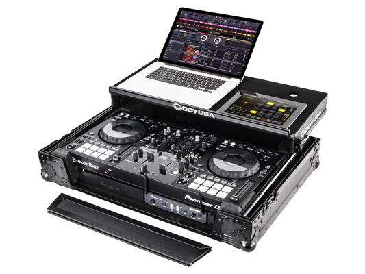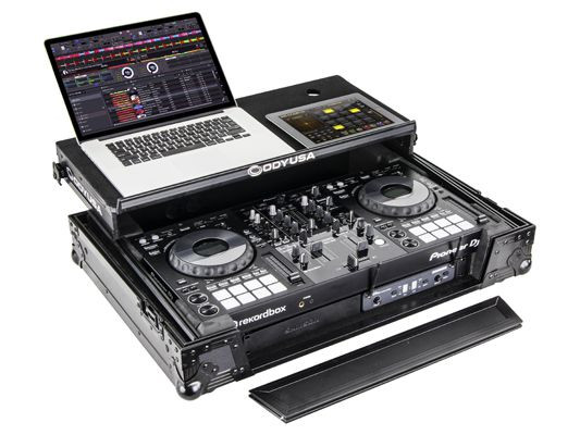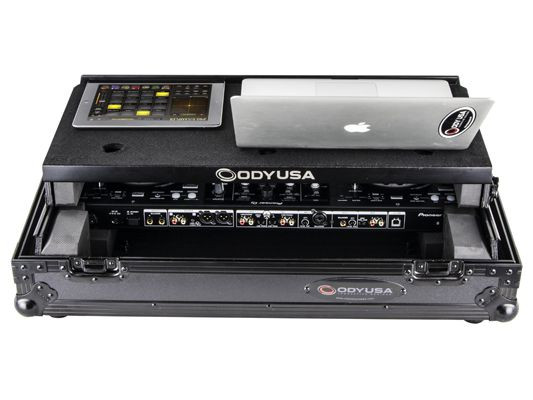 The Odyssey FZGSPIXDJRR1BL BLACK LABEL' case includes a removable V-cut' front panel allowing access to the all of the DJ controller's front knob controls and input jack ports. It features our patented Glide Style' platform perfect for positioning your laptop, tablet, effect processors, and other gear right where you want it over the Pioneer XDJ-RR All-in-one rekordbox DJ system controller. A cable management port, essential for a clean setup, is positioned below the rear of the player. Also Underneath the controller compartment is another one of Odyssey's signature digital controller case designs; a 1U 19" rack mount space below the controller space perfect for rack mountable gear such as a wireless mic system, power strip, drive rack, pullout shelf, or storage drawer. The mounting hardware included allows for front or rear rack mounting and can be removed all together if needed. Also available in our standard Flight Zone Series with silver and chrome hardware FZGSPIXDJRR1.