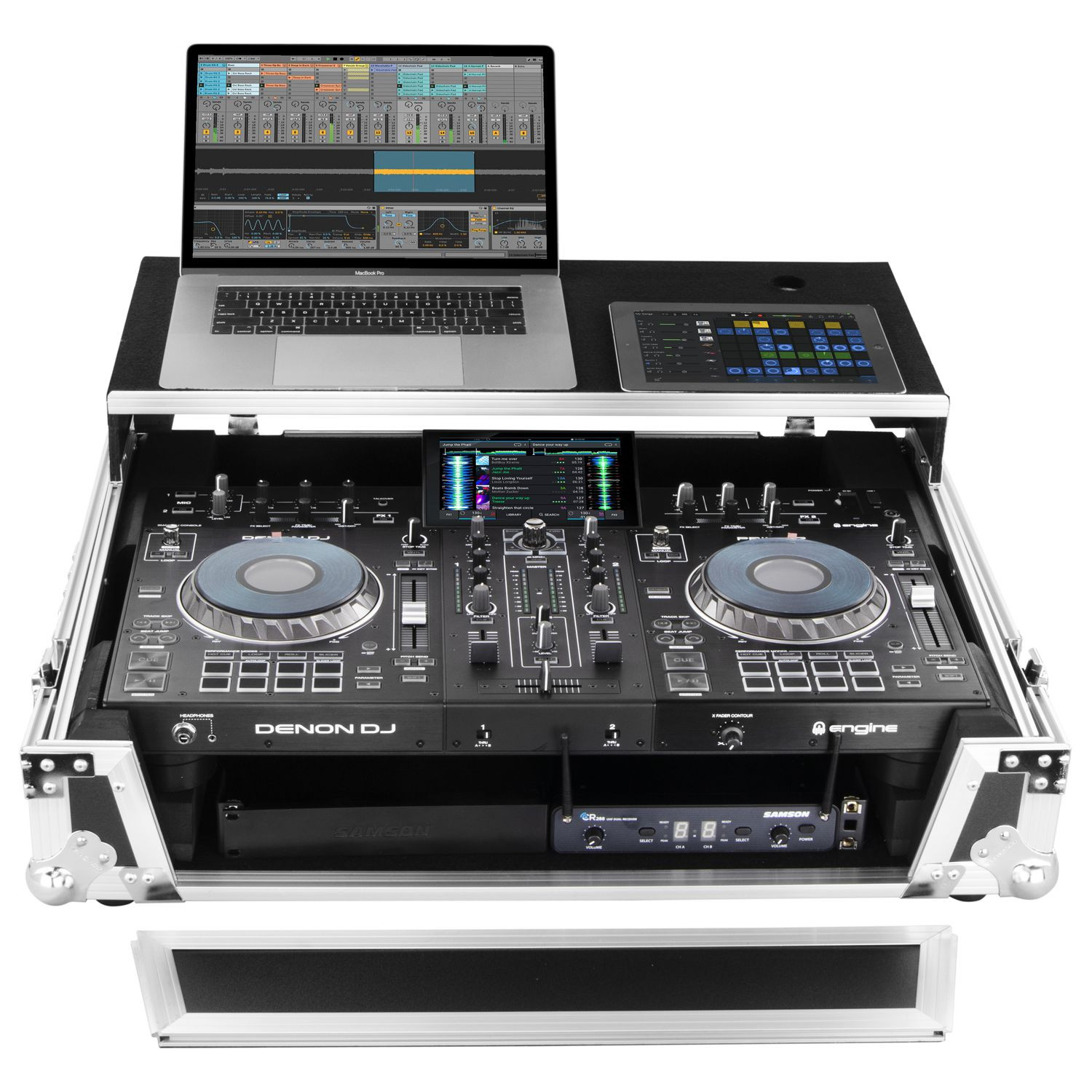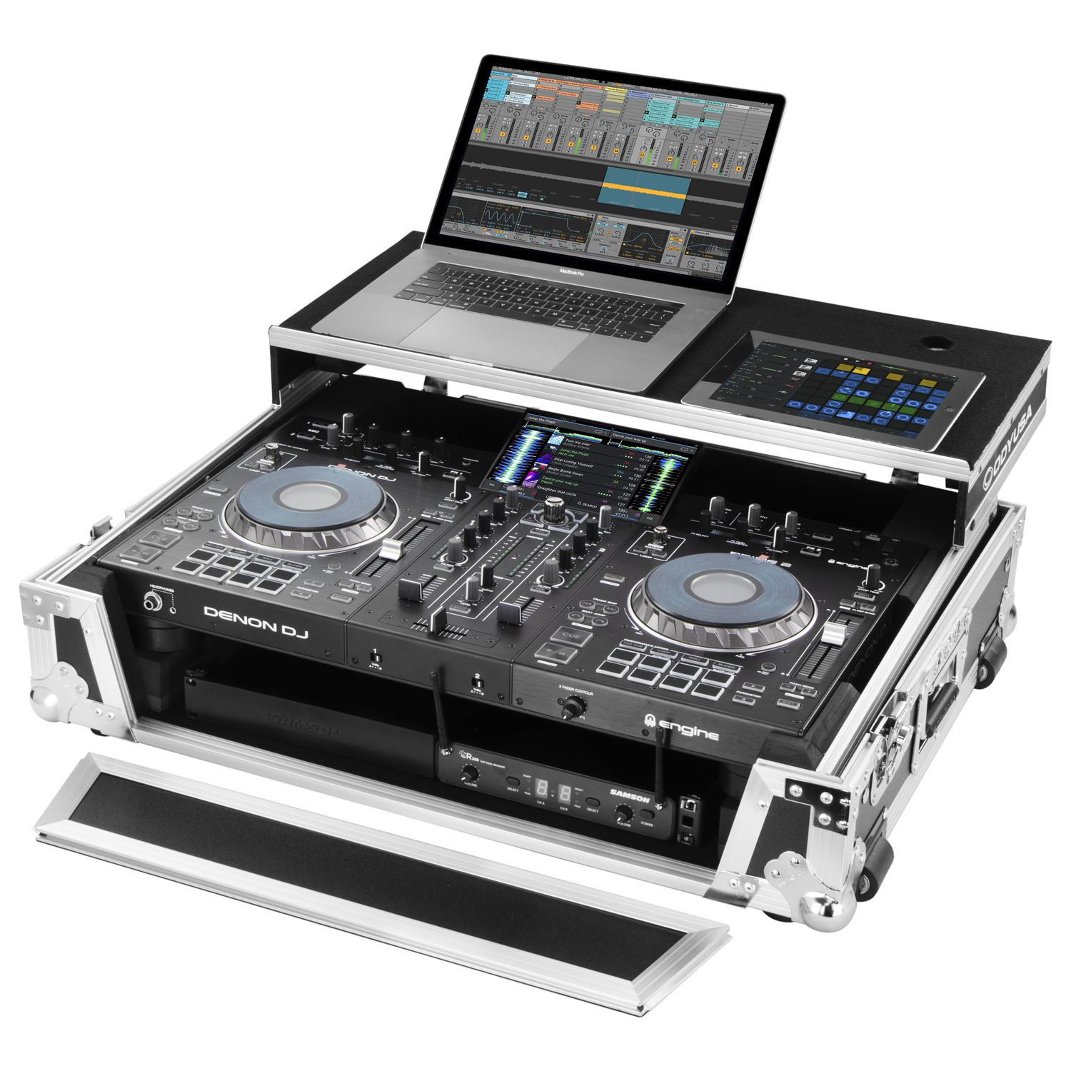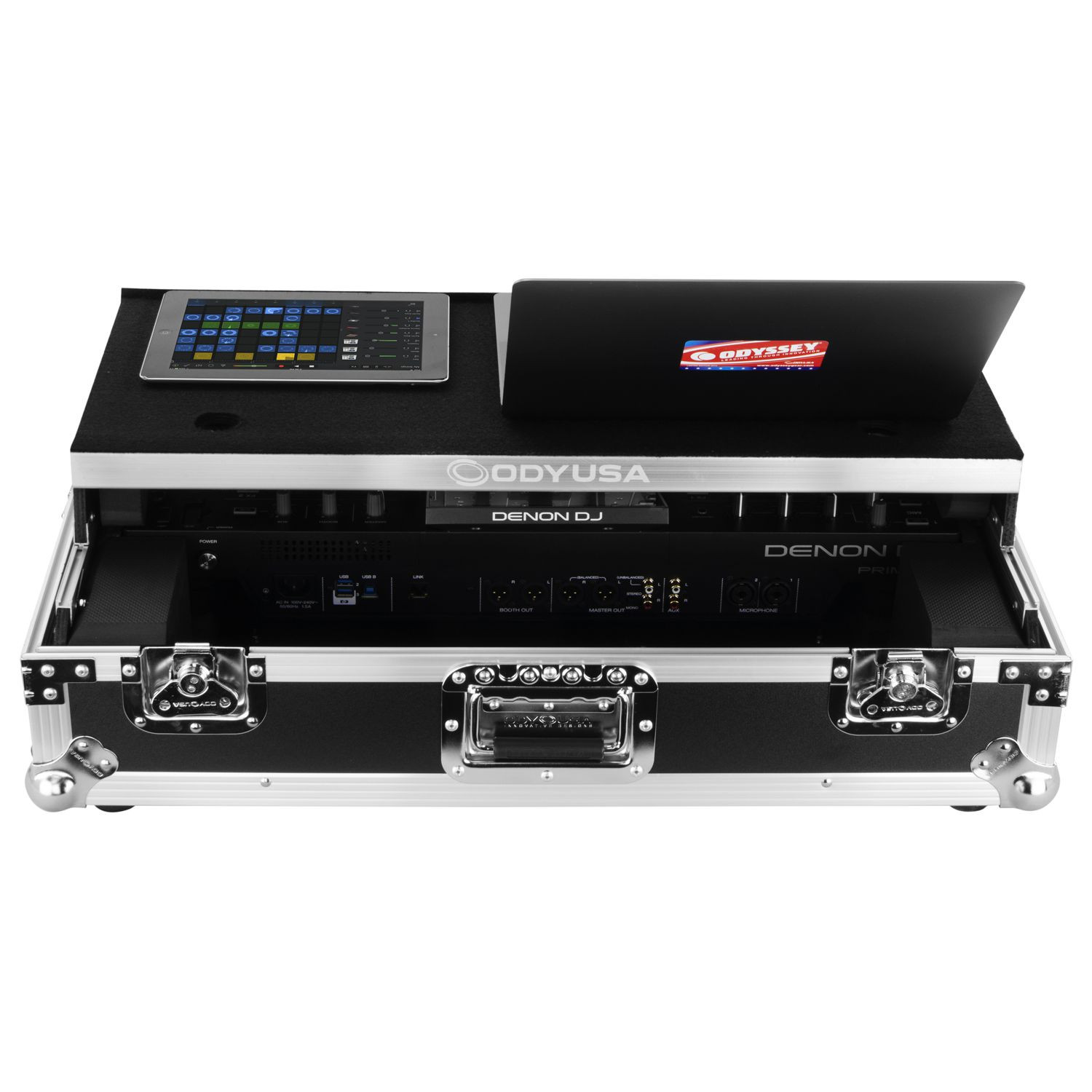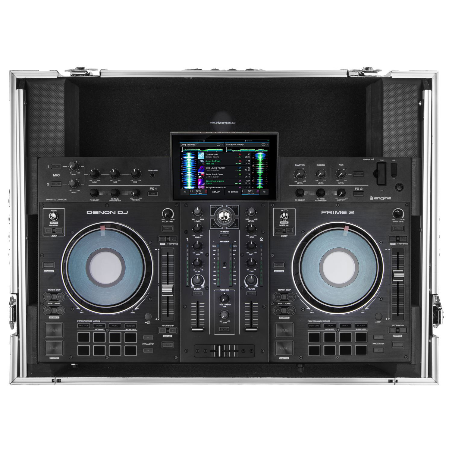 The Odyssey FZGSPRIME2 Flight Zone case includes a removable V-cut' front panel which allows access to the all of the DJ controller's front knob controls and input jack ports. It features our patented Glide Style' platform perfect for positioning your laptop, tablet, effect processors, and other gear right where you want it over the Prime 2 controller system. A cable management port, essential for a clean setup, is positioned below the rear of the player. Also Underneath the controller compartment is another one of Odyssey's signature digital controller case designs; a premounted 1U 19" rack mount space below the controller space perfect for rack mount gear such as wireless mic systems, power strip, drive rack, or storage drawer. The included mounting hardware allows for front or rear rack mounting and can be removed all together if needed.