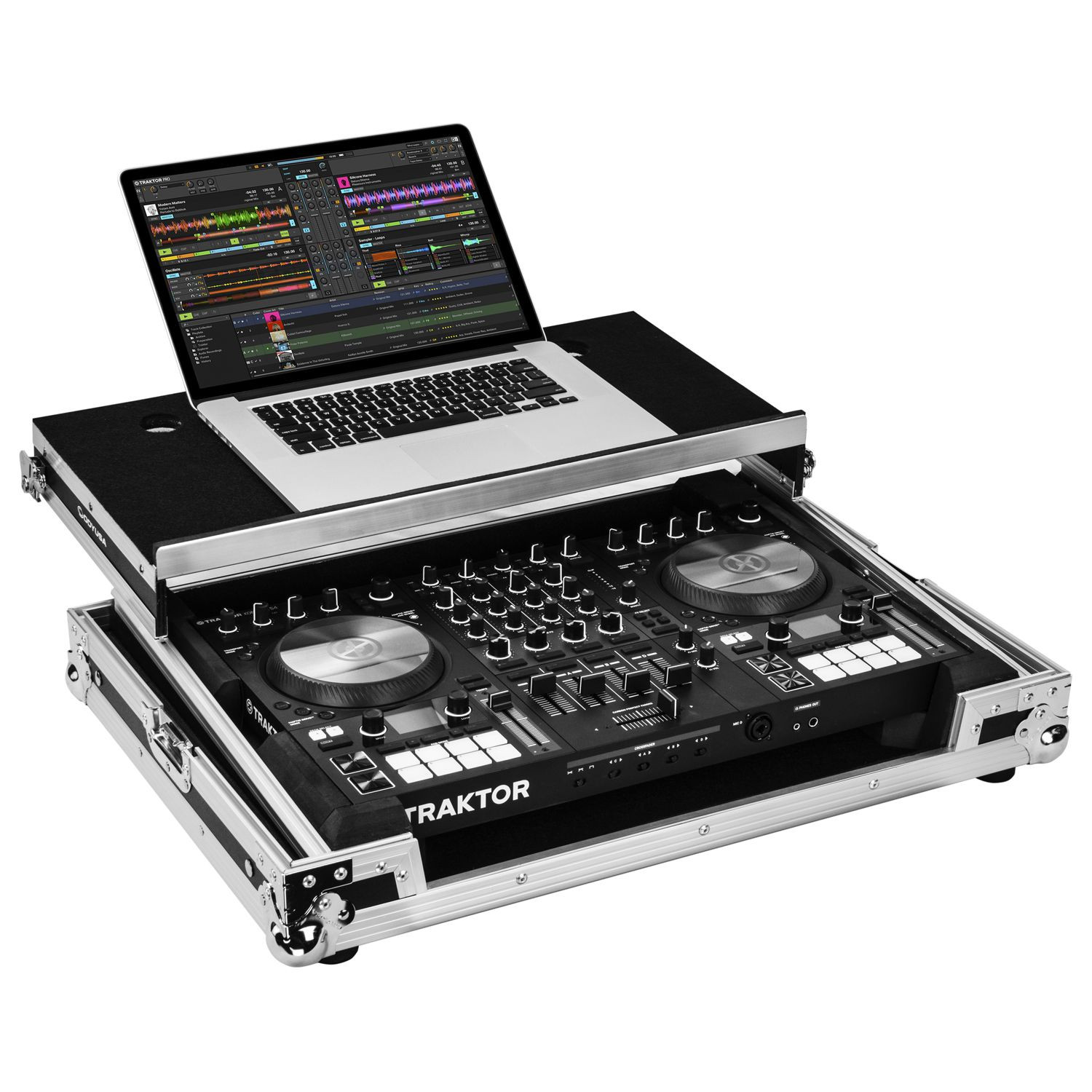 The Odyssey Flight Zone FZGSTKS4MK3 case is specially made for the Traktor Kontrol S4 MK3 controller, but is also compatible with the original Traktor Kontrol S4, the S4 MK2, and S5 DJ controllers. It features our patented Glide Style' laptop platform. Other features include a lower storage/ventilation pit that has enough room for cables and other compact DJ essentials and glide platform latches to lock the platform securely in place. The latches also make it compatible with our optional GSA angled panel glide platform supports (sold separately) which let you setup the platform at a raised angled configuration over the controller.