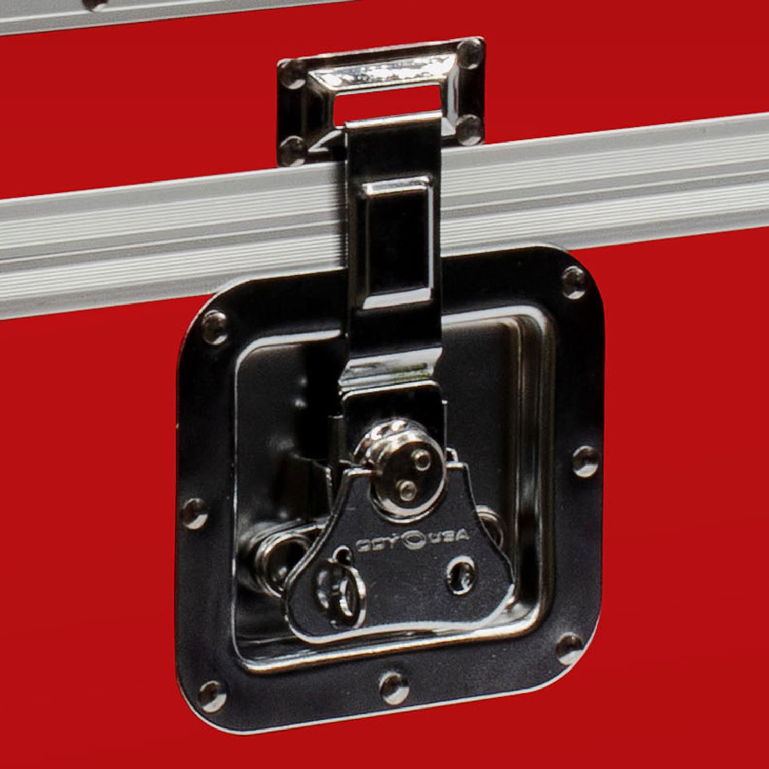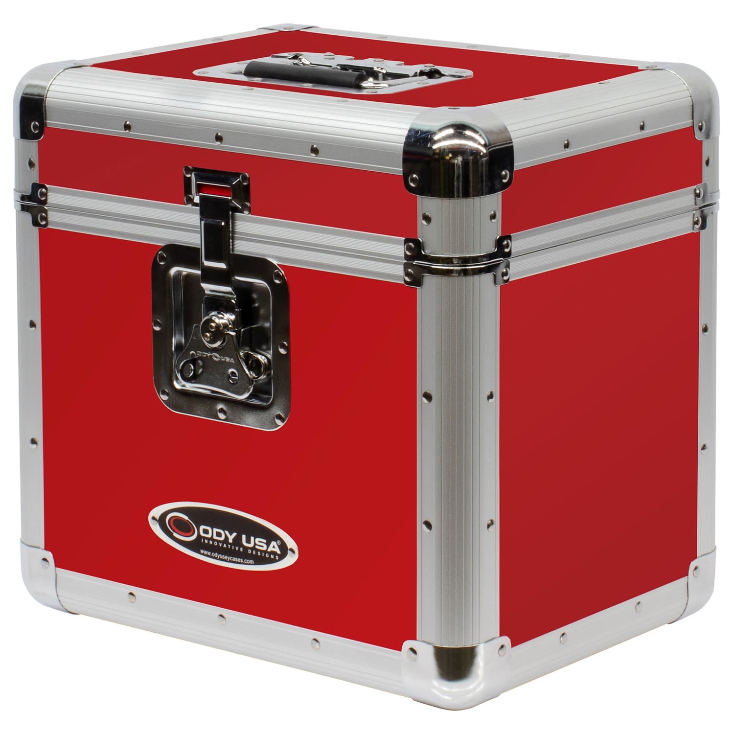 The Krom' series KLP2 12" and LP vinyl/utility case holds approximately 70 records in it's fully foam-lined interior compartment. The sleek exterior features a fully removable lid and a lockable butterfly latch, and is designed with four bottom rubber feet and a recessed heavy-duty spring-loaded handle which are essential for secure stacking of the bottom of the case on top of the lid, or one KLP2 case on top of another.