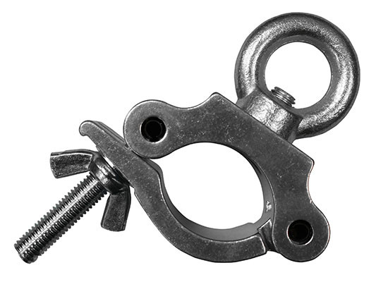 The Odyssey LACPE50 pro wide lighting clamp with eye bolt has a working load limit of 1,102 lbs. It features a 2" thick aluminum body construction and is compatible with up to 2" diameter tubes.