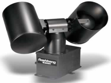 Dual strobes rotate and tumble in this Centerpiece lighting effect - 120V 50W (LBE-50) X 2, 2 beams, rotating flashing strobe cannons.