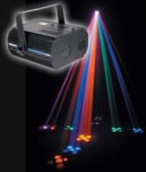 The FX16 features three modes of operation which can be selected with the toggle switch located on the rear panel. The three modes include a strobe effect, gobo change, and sound active moonflower effect.